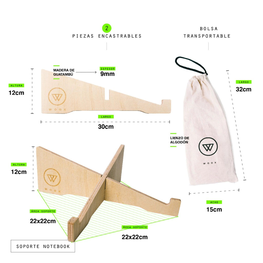 Este soporte permite elevar la pantalla de la notebook a la altura de tus ojos, ayudando a trabajar más cómodo